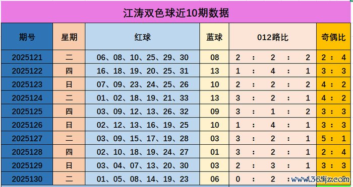 红球奇偶分析:上期红球开非常数4个,偶数2个,奇偶比4:2,近10期奇偶比33:27,奇数走势占优,展望本期奇数号码走势占优,奇偶比4:2